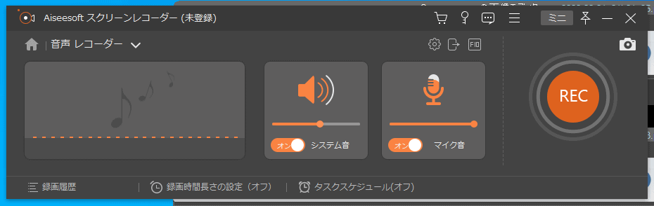録画の範囲や音の設定などをして、RECボタンを押します。