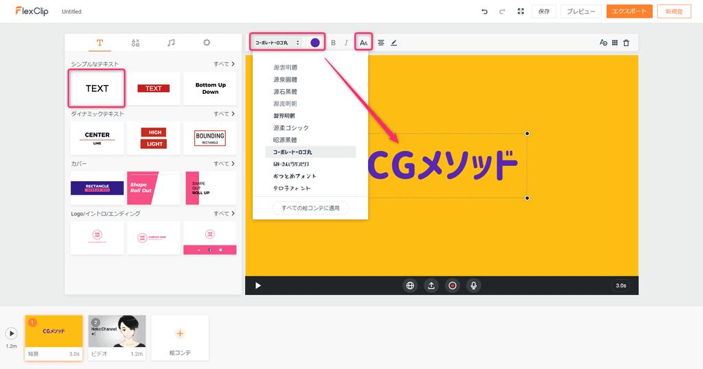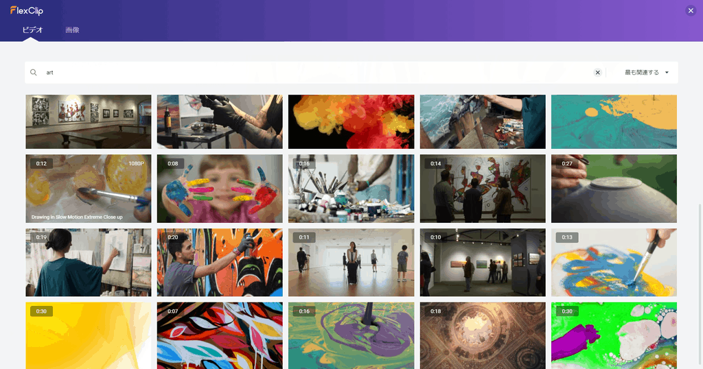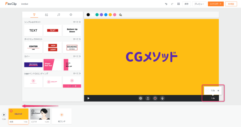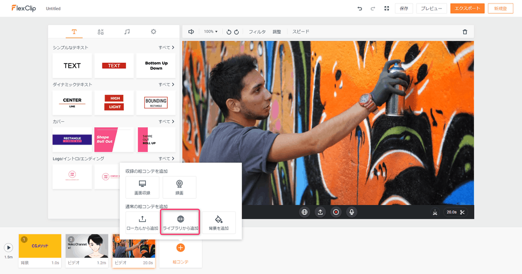 再び絵コンテから「ライブラリから追加」を選択すると無数のFlexClipの素材を使用することも可能です。