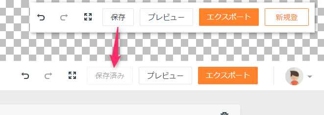 まず右上のメニューから「プレビュー」ボタンを押すと動画の再生ができます。