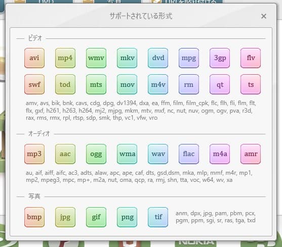 サポートしている動画形式
