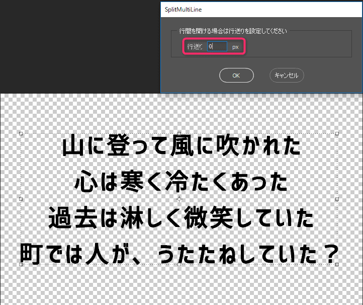 以上で、改行ごとにレイヤー分割されます。