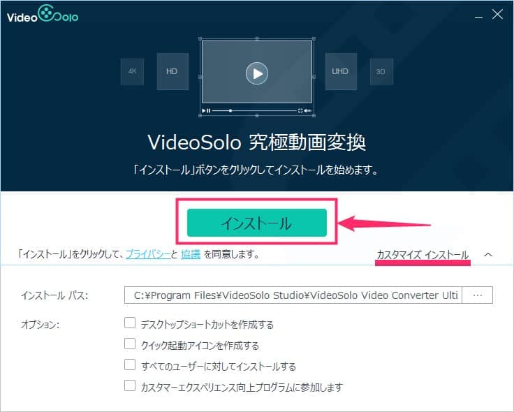 ダウンロードした「video-converter-ultimate.exe」を起動してインストールをしましょう。