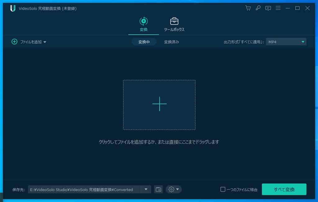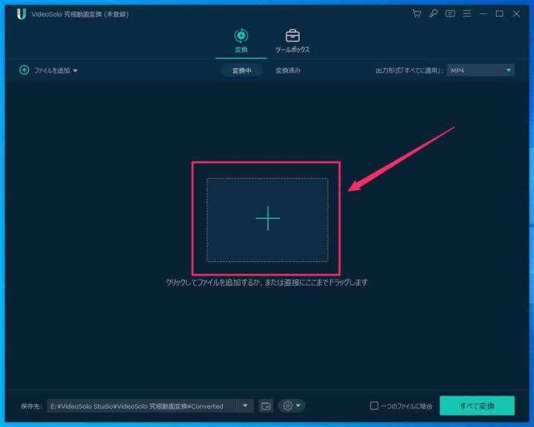 VideoSolo 「究極動画変換」を起動して変換したい動画をドラッグ&ドロップします。