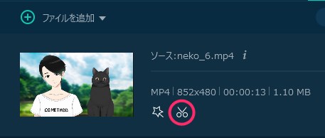 続いて、動画の尺を変更してみます。サムネイル横のハサミボタンを押しましょう。