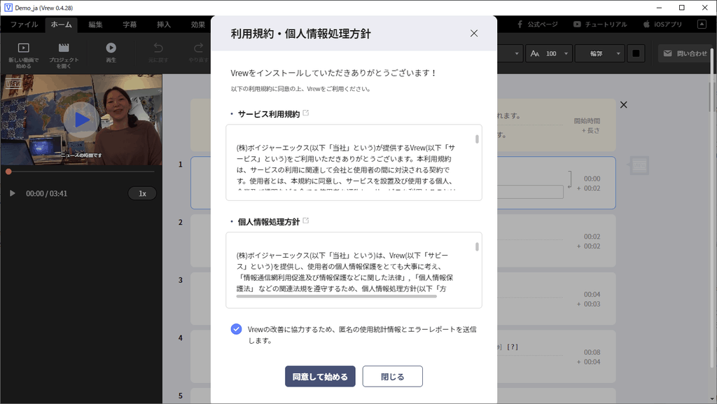「Vrew-x.x.xx.exe」をクリックするとソフトが起動します。