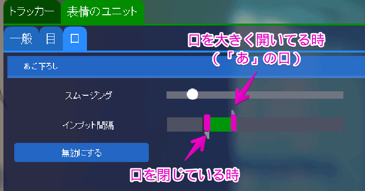 - 高度なトラッキング設定>表情のユニット