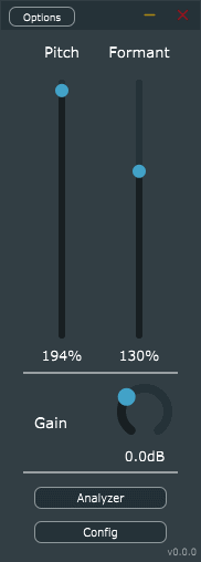 次にセオリー通りピッチ(Pitch)を上げます。C3(131Hz)~C5(523Hz)あたりが女性の声に適した範囲です。ピッチは194してみました。