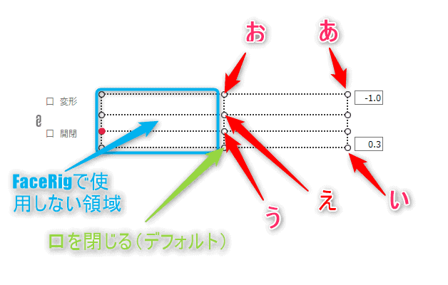 ※FaceRigではマウス操作する(Alt押しながら左右に左ドラッグ)パラメーター