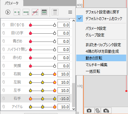 下記のパラメータを追加で作成、片方だけ作成して動きの反転をすると作業数が半分になります。