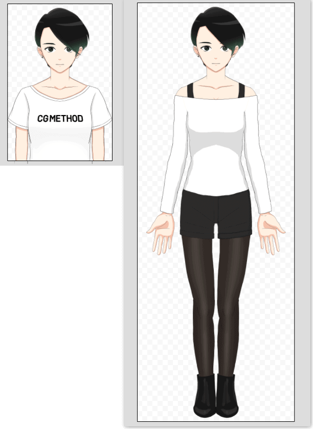 あとはバストアップアップのLive2Dデータへ、体のパーツを追加してモデリングするだけなのですが、