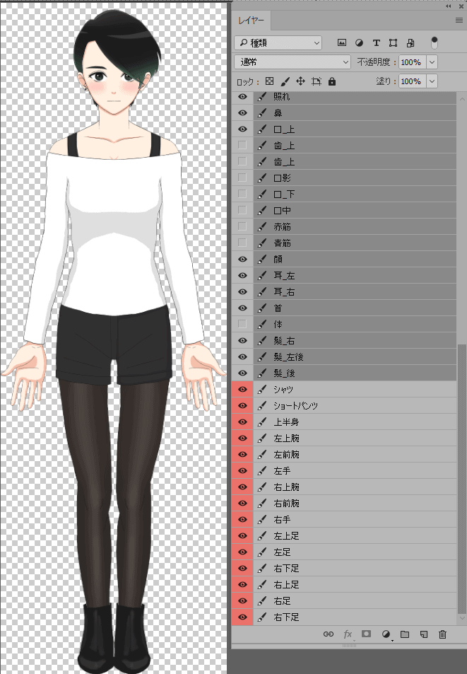 無事位置ずれなくPSDをインポートできたら、まず階層構造を作成します。