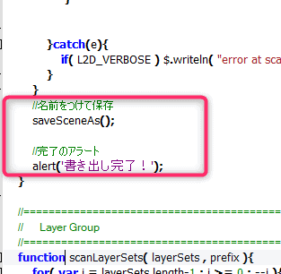 スクリプトを起動すると処理が始まり、「書き出し完了!」というアラートを閉じるとPSDと同階層に書き出し用のデータが生成されます。