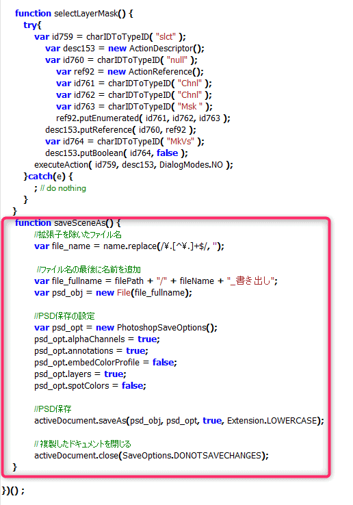 activeDocument.saveAs(psd_obj, psd_opt, true, Extension.LOWERCASE);