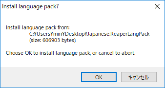 その後Reaperにドラッグ&ドロップして、再起動すれば日本語表示になります。