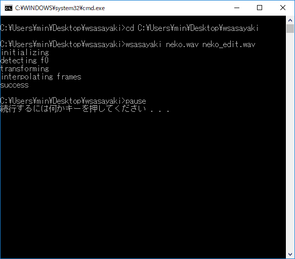 cd C:Users\ユーザー名\Desktop\wsasayaki