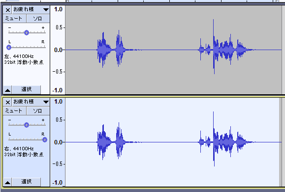 まず同じボイスデータを2回読み込みますで、▼からステレオトラックの作成でステレオに変換