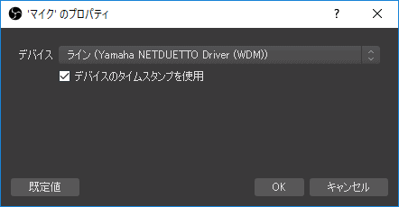 声を変換する場合、恋声またはREAPERの出力先は仮想のyamaha NETDUETTO Driver(WDM)なので、OBSも同様にしてやります。
