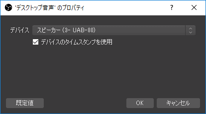 携帯端末の音量をあげて、OBSの音量ゲージが変化すればOK