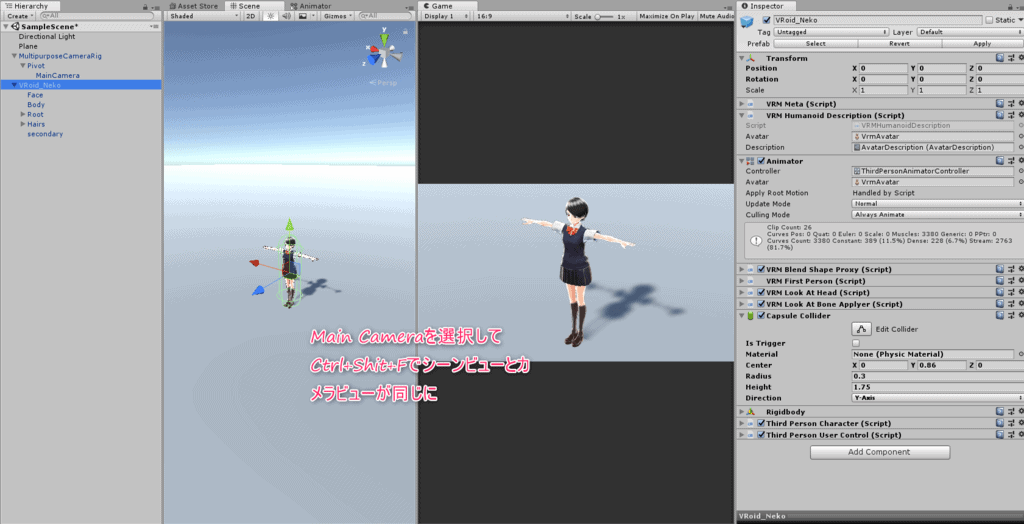 ③いくつかコンポーネントをアタッチ(下記参照)https://t.co/0Qybd8L5iqで、20分もかからずUnityで操作できるように!#Vroid #vroidstudio pic.twitter.com/xALNJNd7I4