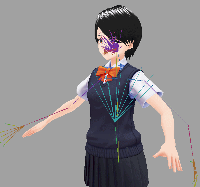 - サンプルモデルとだいたい大きさを合わせます。骨も動かして大体の位置にあわせます。