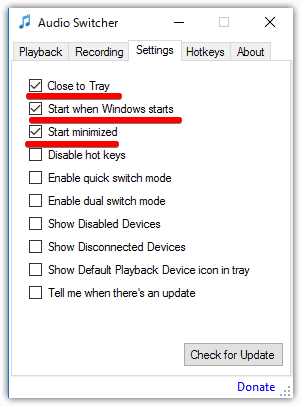上記の作業をショートカットで切り替えるには、AudioSwitcherというフリーソフトがおすすめです。