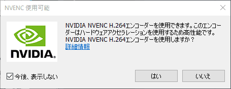 ソフト起動後「NVEC 使用可能」のダイアログがでてきたら「はい」を押しておきましょう。