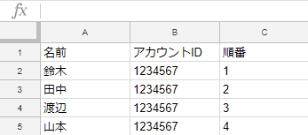 - シート1に名前とChatworkのID、通知順番を入力