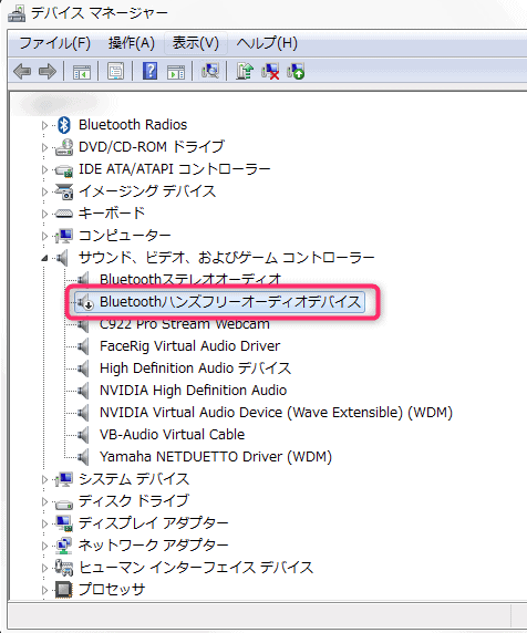 「サウンド、ビデオ、およびゲーム コントローラー」の項目からBluetoothハンズフリーオーディオデバイスを選択