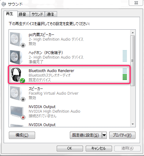A2DP(シンク)をクリックする自動的に接続されます(Bluetooth Audio Renderer)が点灯