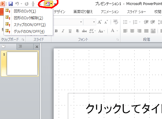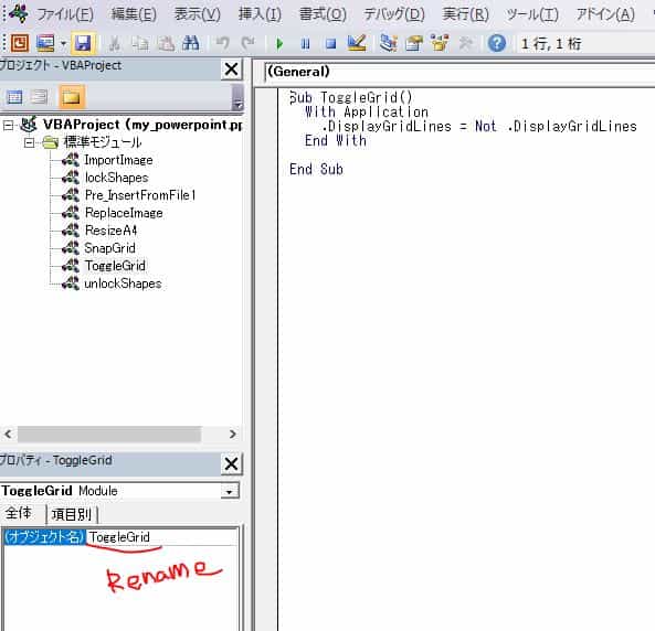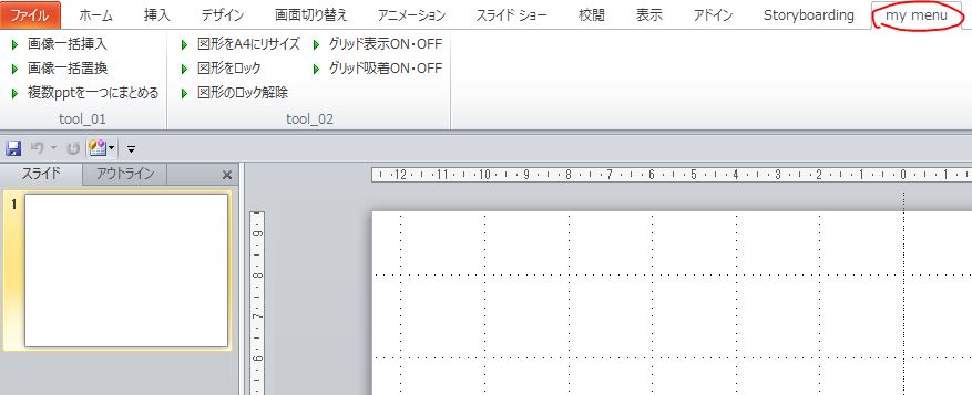 displayGrid.ppam;グリッドのON/OFF;displayGrid上部のクイックアクセスツールバーからマクロを起動