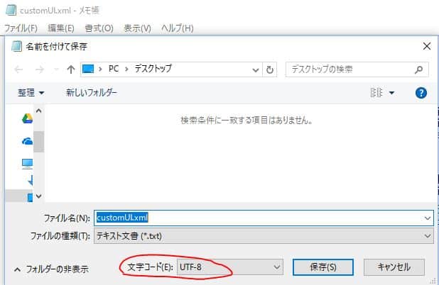 メモ帳を開いてタブメニューの記述を追加しcustomUI.xmlという名前で保存。