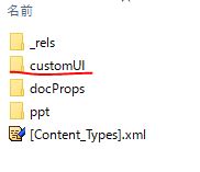 </customUI>できたら、customUIというフォルダを作成してその中にcustomUI.xmlを入れて、そのフォルダごと解凍したパワポデータの直下に入れます。