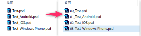 特定の名前に応じてリネームするバッチファイル