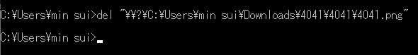 「del」+「半角スペース」+「”」+「?」+「C:Users\フォルダ名\ファイル名.拡張子」+「”」