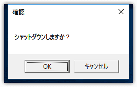 A = MsgBox("シャットダウンしますか?",vbOKCancel,"確認")