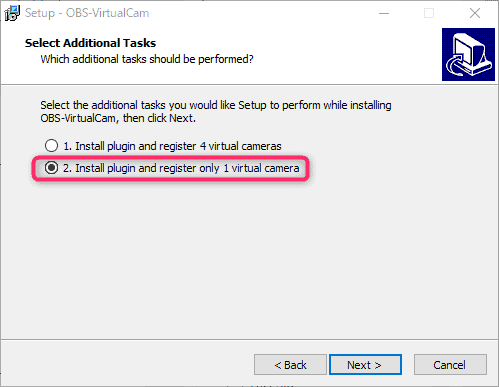 OBSの仮想カメラ用のプラグインもインストールします。