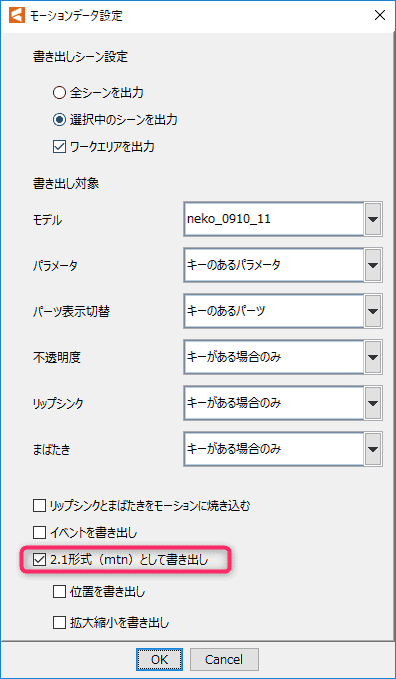 2.1形式(mtn)として書き出しを選択すればmtnに変換して出力できます。