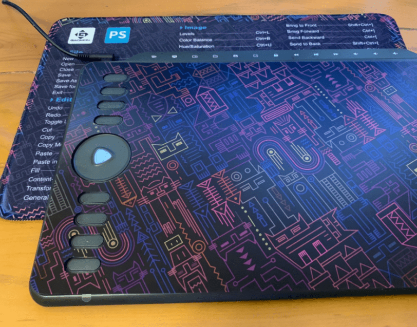 そしてショートカットが記載されている、ペンタブマットですが、どちらかというとマウスパットでも使えそうです。