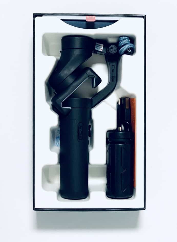 スマホ専用ジンバル、USB-Type Cの充電ケーブル、ストラップ、持ちて兼三脚、布の5種類が格納されていました。